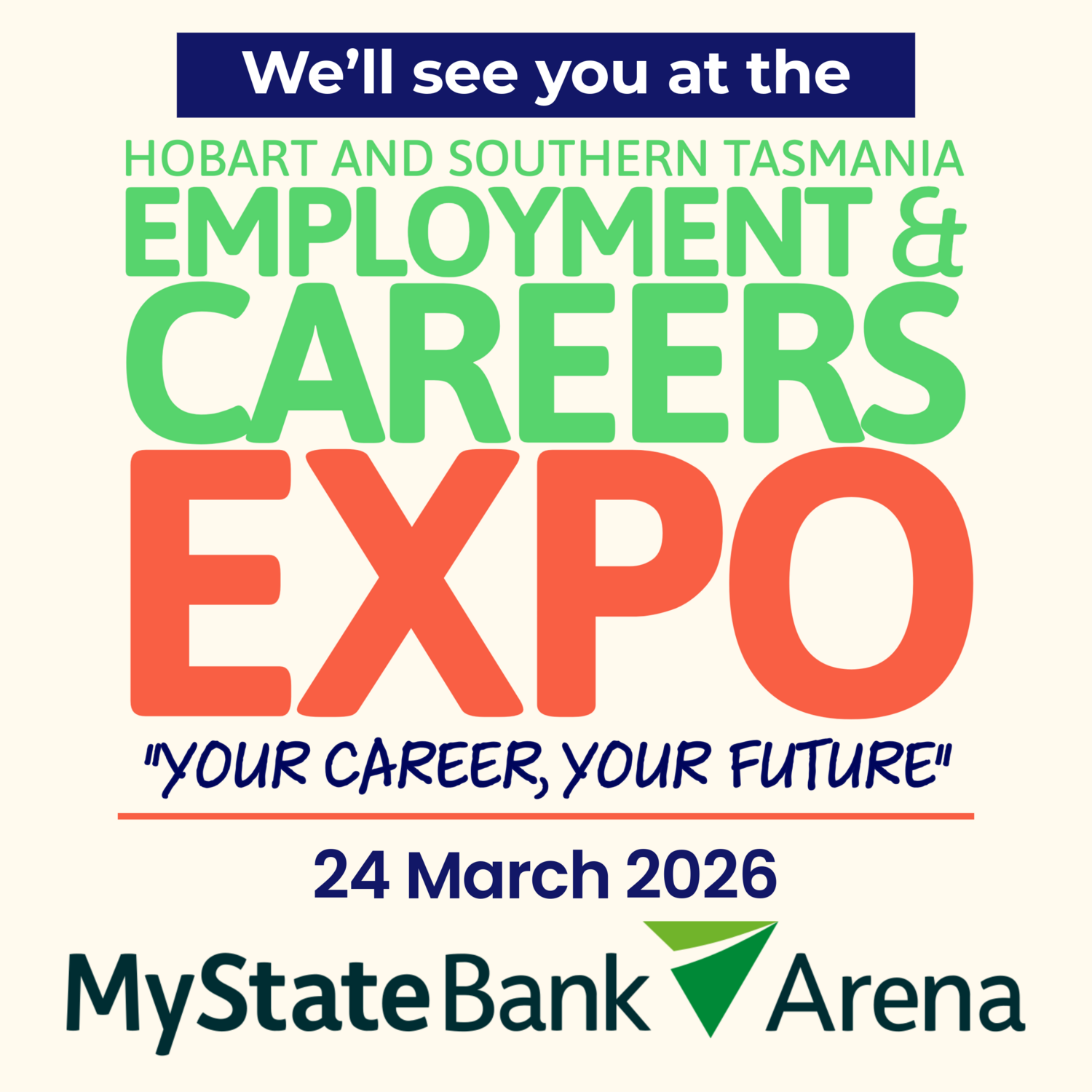 We’ll be at the Hobart and Southern Tasmania Employment & Careers Expo on 24 March 2026 at MyState Bank Arena.